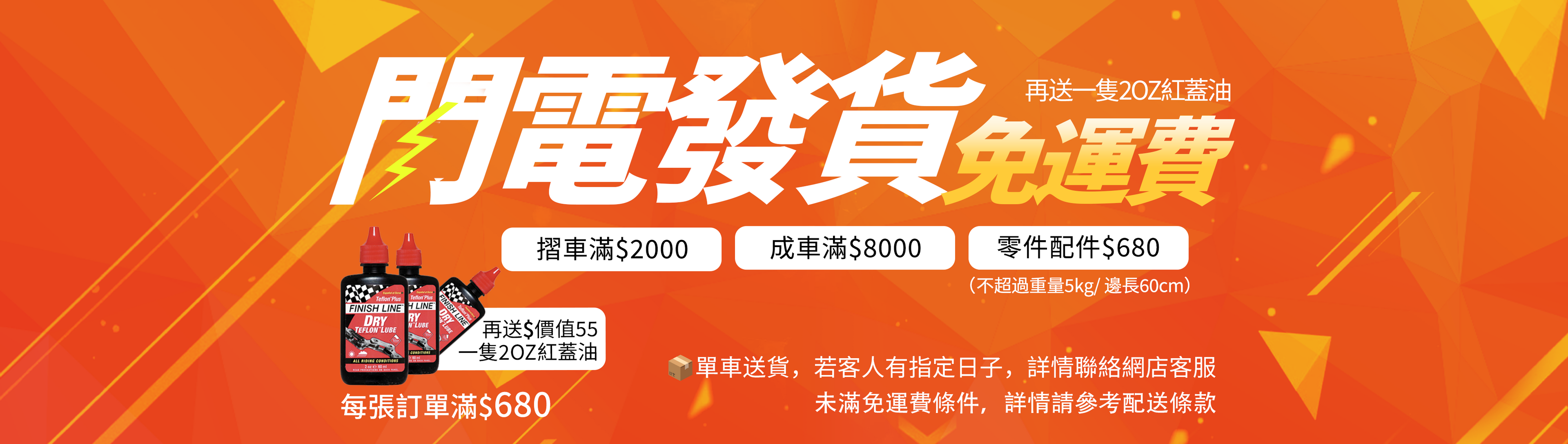 買滿$680或以上配件 / $2000或以上摺車 / $8000或以上成車包本地郵寄