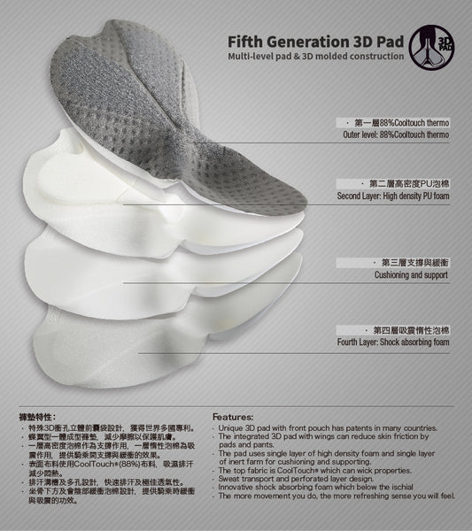 褲墊採用Atlas第五代3D立體囊袋一體成型褲墊。