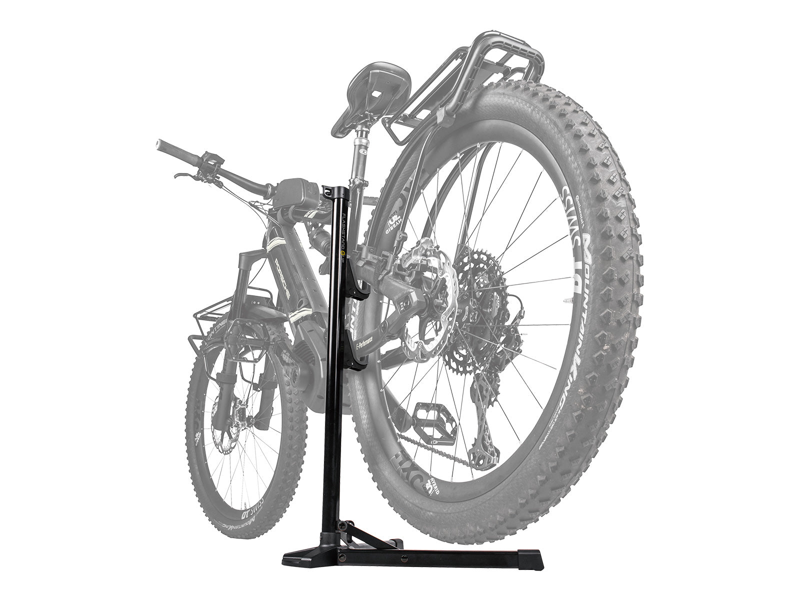 兼具穩固和便利兩種特性的立車架,可滿足車輛維修和陳列需求。 掛勾包覆防刮橡膠避免刮傷車架烤漆, 加寬三角底面積更適合電動車或大尺碼自行車使用。